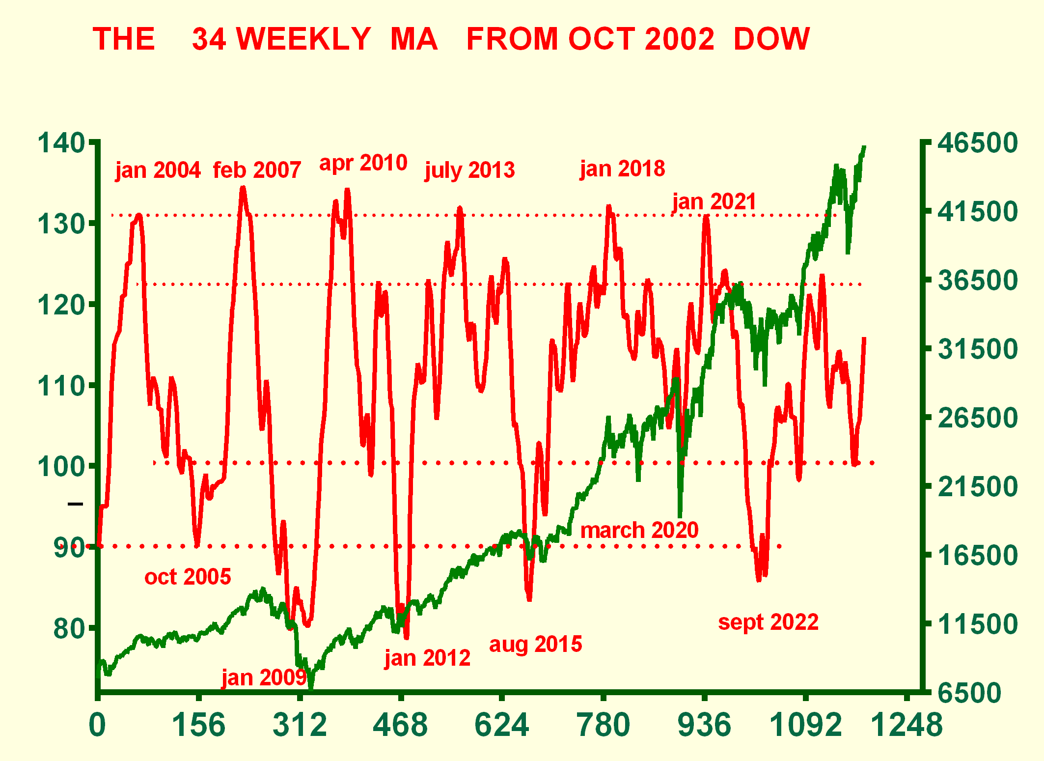 The average 34 Weekly Ma of the past 23 years is 110. Left axis. The offsets for the next 17 weeks average 98.